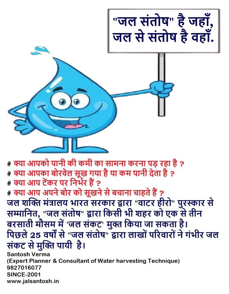 # Awarded the “Water Hero” award by the Ministry of Jal Shakti, Government of India, “Jal Santosh” can free any city from water crisis within one to three rainy seasons.